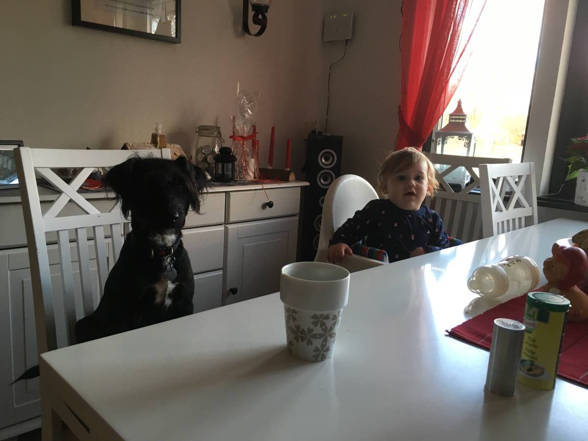 Enda bilden jag tog.. Nikki tyckte det var lajbans med kompis så nära och hade nog gärna bjudit honom på både det ena och det andra, men han hade redan fått en kopp kaffe så det fick räcka där.