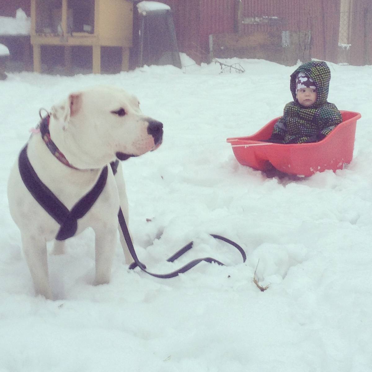 Bilen är tinad, tog säkert 40 minuter bara att få rutorna skrapade, allt var helt igenfruset och jag hade ett helsike för den enda dörren som gick att öppna var min. Sen när jag körde ner till byn öppnades alla dörrarna. Lagom spännande. Min lille Rocky fick bli tvångspåklädd igen, och fastän jag bjöd på mig själv genom att trycka ner arslet i hans lilla pulka och skrika till Morgan ”dra nu innan jag ramlar av igen” fick jag inget gehör. Vem som helst annars hade nog skrattat åt svaret jag fick, ”det går inte, snöret kommer gå av!” Morgan gick in i sitt bås och Rocky efter, där trivs han bra – bland skruvdragare och gasolvärmare. Det är väl liksom bara att gilla läget, han säger att han inte gillar snö och jag får väl ta det. Nästa år kanske han känner annorlunda.