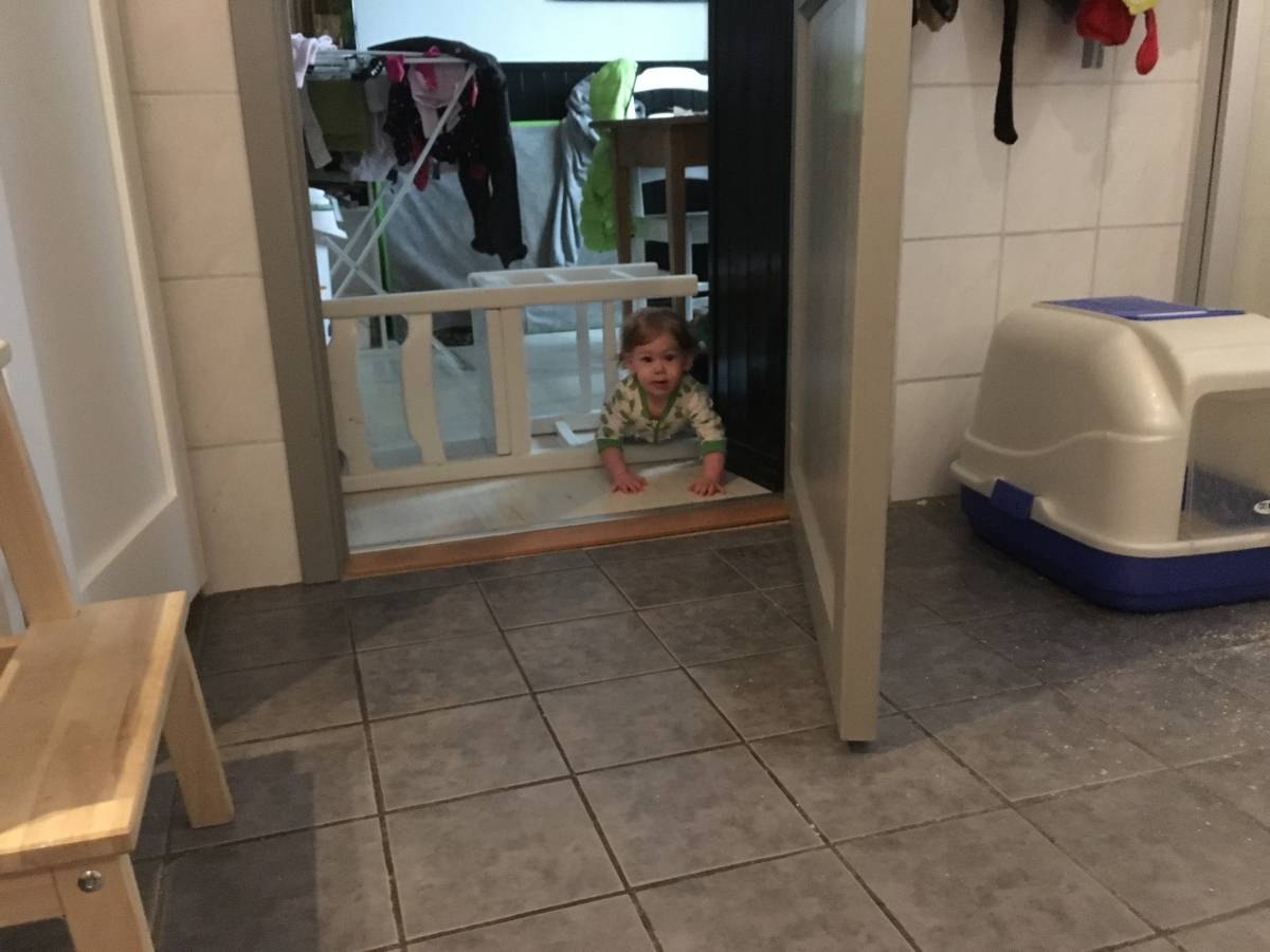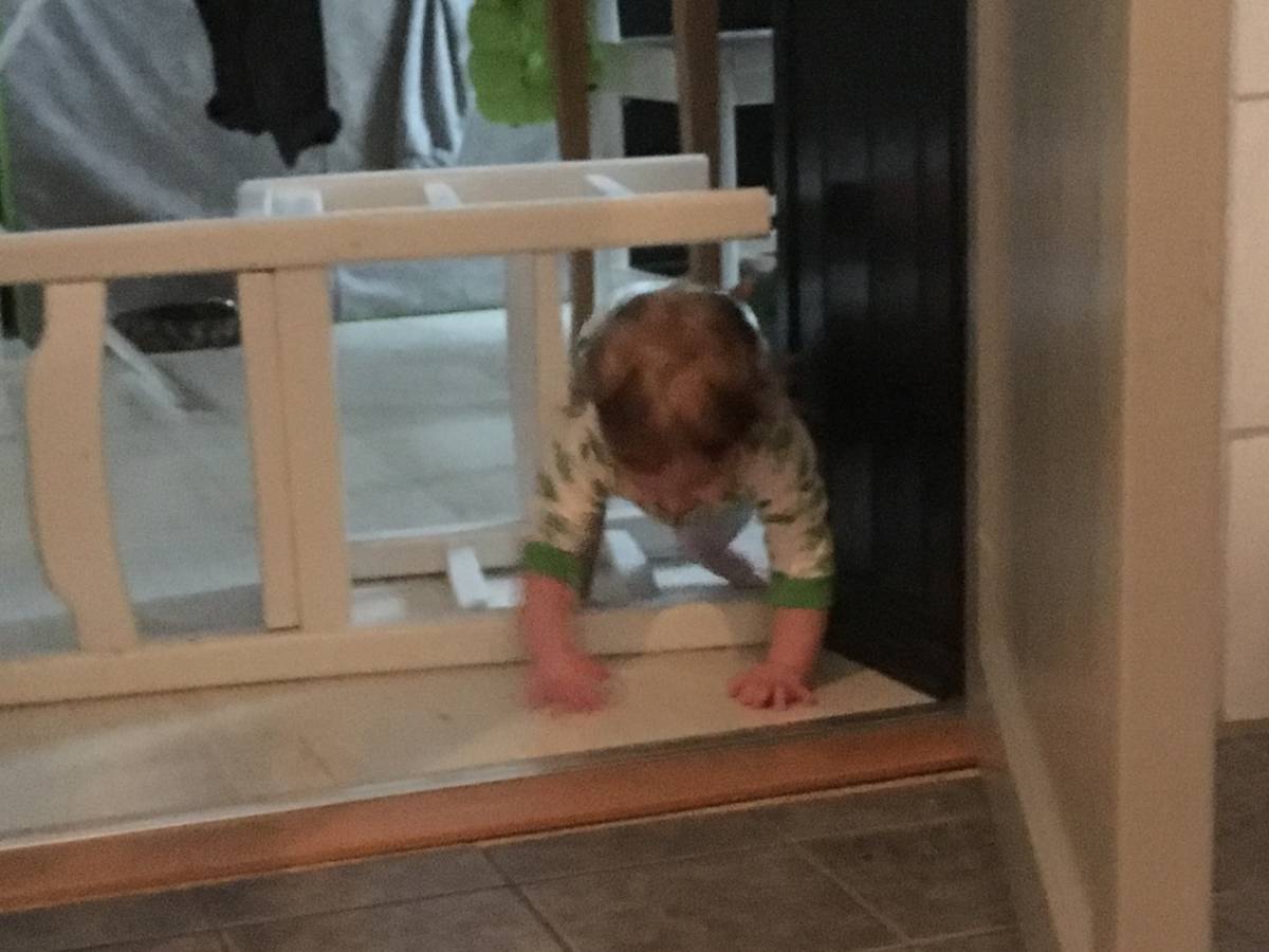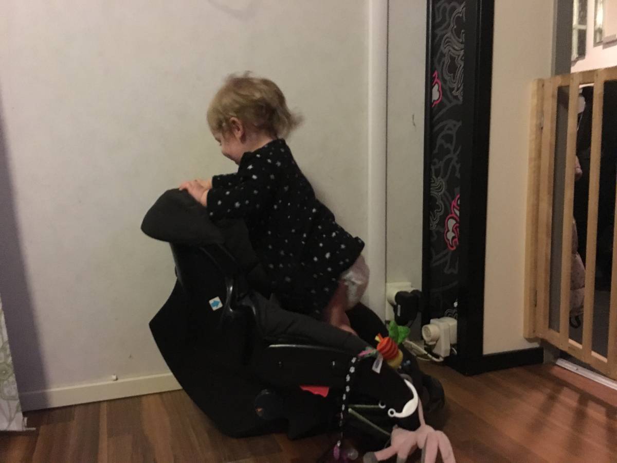 Nikki är exakt lika vild och orädd som Rocky var när han var liten. Hon slänger sig och slår sig hela tiden, men det är inte ofta hon blir ledsen. Innan idag slog hon en kullerbytta över nånting så hon landade på munnen, vi sprang dit men hon bara skrattade. Hon klättrade upp i babyskyddet för en stund sen, och mother of the year skulle bara fota henne, det gick sådär.