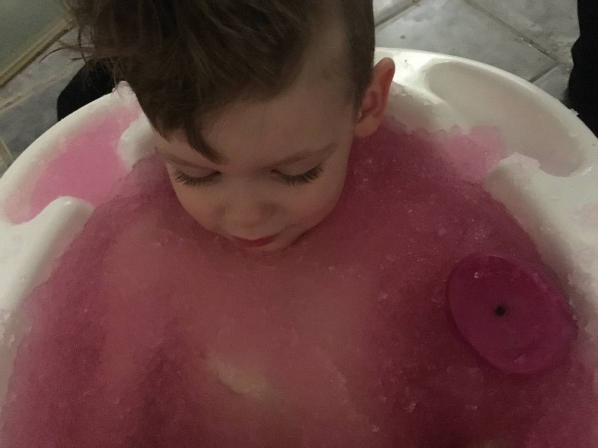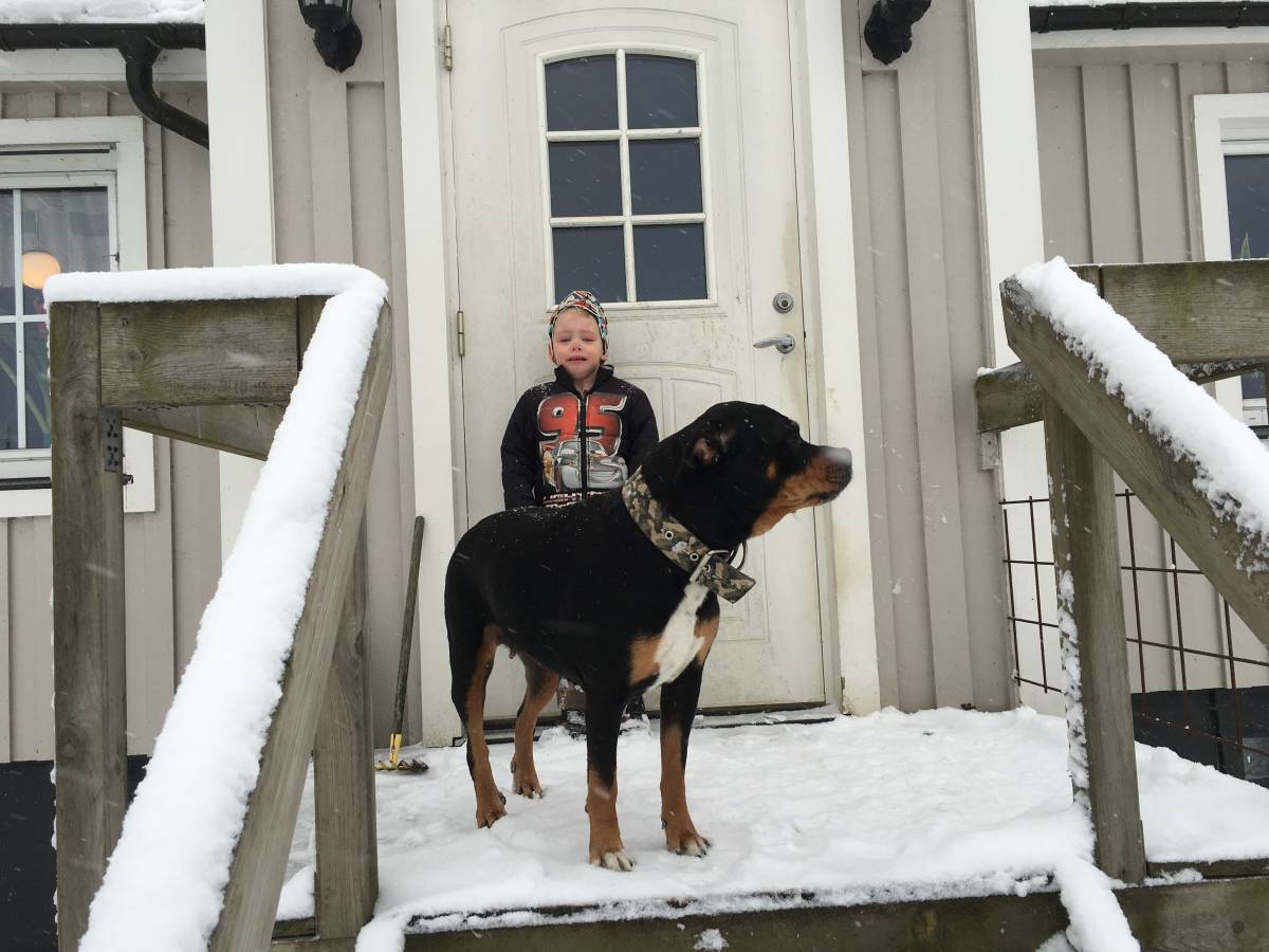 Det blev varmare på eftermiddagen och jag och Nikki gick också ut. Rocky hade grävt ett stort hål, en damm enligt honom – livsfarlig för vuxna så vi fick inte gå nära. Jag satte mig och gungade med Nikki och det var hennes första gång. Hon bara låg där i mitt knä och tittade på himlen. Som hon mös. Imorgon ska jag mecka i bebisgungan så hon kan gunga själv. Sen kom Rocky och jag tyckte att det var en bra idé att lära honom snurra med gungan… Jag snurrade upp snöret och satte fart, han tyckte det var jättekul och jag blev också uppeldad för jag minns hur kul det var. Sen trillade han av gungan och det var väl ingen fara med det, utom att han var ju helt yr så när han reste sig tjongade han i fotstödet på tvillinggungan. Jag blev såklart helt hispig och försöker låta lugn samtidigt som jag försöker se var det tog. Jag ser bara blod. ”Munnen, jag slog munnen mamma. Kommer det blod? Äh, det går över igen, gör det igen!” Eh, jaha? Inte en enda ledsen min. Vilken liten krigare han är, tänkte jag. En timme senare bet Nikki honom i armen och jag kan meddela att det togs det inte lika lätt på.
