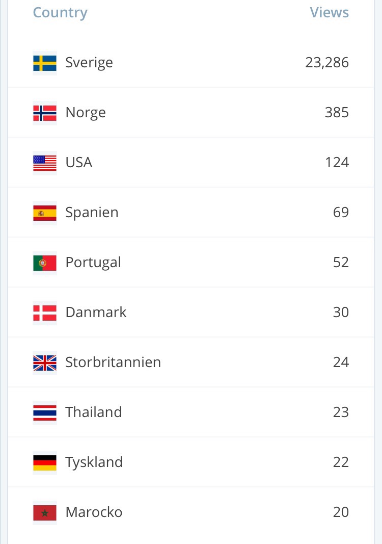 Jag undrar vem som läser min blogg i USA? Jag vet vem som bor i Norge, och vem som semestrade i Spanien, men Portugal? Marocko?