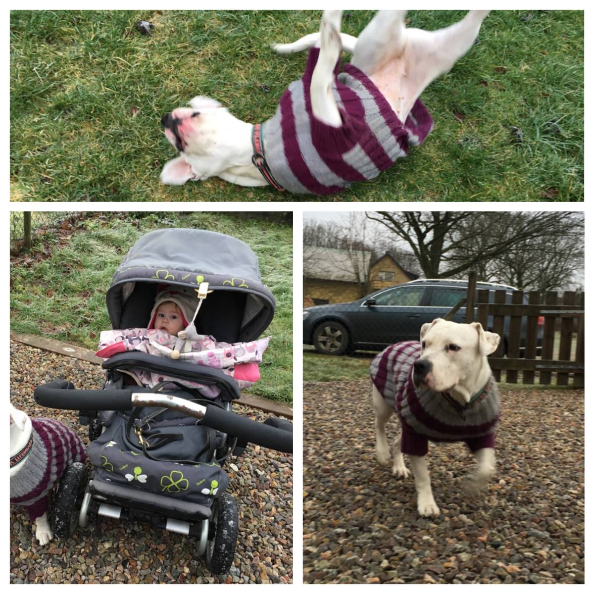 Under tiden Rocky var på fest passade jag på att röra på benen. Det blev ingen lång runda men när man inte varit ute på flera veckor så är allt välkommet. Vera fick kläder på sig eftersom hon är så frusen, men det hjälpte ju dåligt när hon rullade sig i frosten.