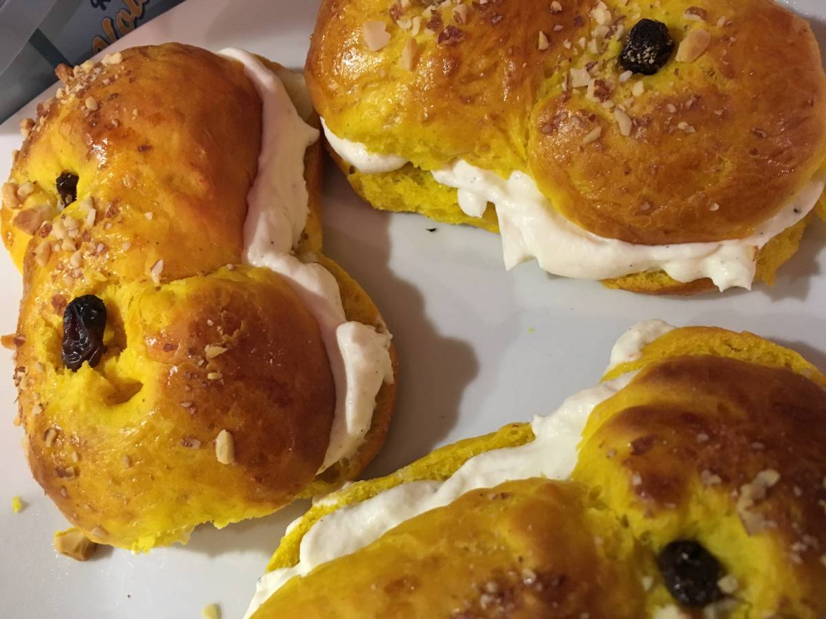 Delar några, kletar på mandelmassa och grädde med vaniljpulver i, varsågod, här har ni Lusslor! Jag lyckades till slut! Heja mig?