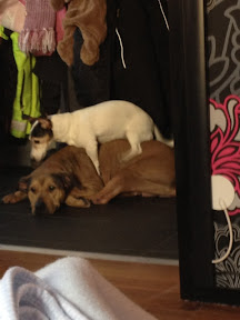 Startade dagen redan kl 8 med Spårkurs för Troja. Vi tränar för fullt nu inför provet om ca en månad. Klarar vi provet är Troja en riktig eftersöks-hund. Tycker att det hade varit väldans roligt om det skulle gå då hon inte är nåt självklart val för uppgiften med tanke på hennes raser. Man brukar välja nån av de typiska jakthundarna för såna här saker och jag hade faktiskt inte en tanke att göra nåt sånt här med henne, vi halkade liksom in på ett bananskal och hon visade sig ha en fallenhet för det här med spår.